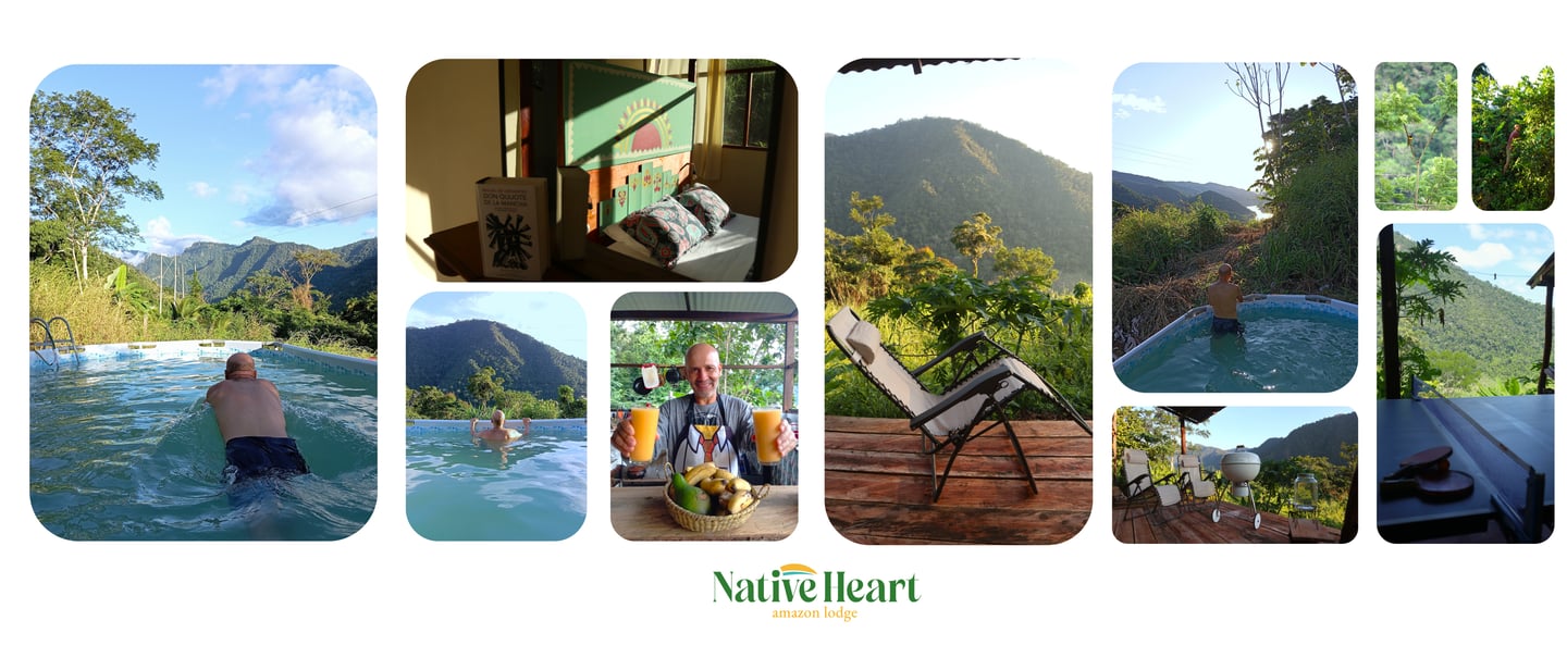 Despertar en Native Heart es como abrir los ojos al primer día de la creación. Desde tu balcón, el majestuoso cerro Puma Rinri custodia el horizonte mientras el imponente río Huallaga serpentea por el valle en un despliegue de belleza absoluta. Esta no es solo una vista; es un asiento en primera fila a la sinfonía privada de la naturaleza. Entre árboles frutales y especies exóticas, verás monos y aves compartiendo el espacio en total libertad. Con mariposas que lo inundan todo y el rastro de ranas y otras especies amazónicas, aquí el bosque no se mira: se vive. No es un paisaje, es una obra maestra que puedes respirar.